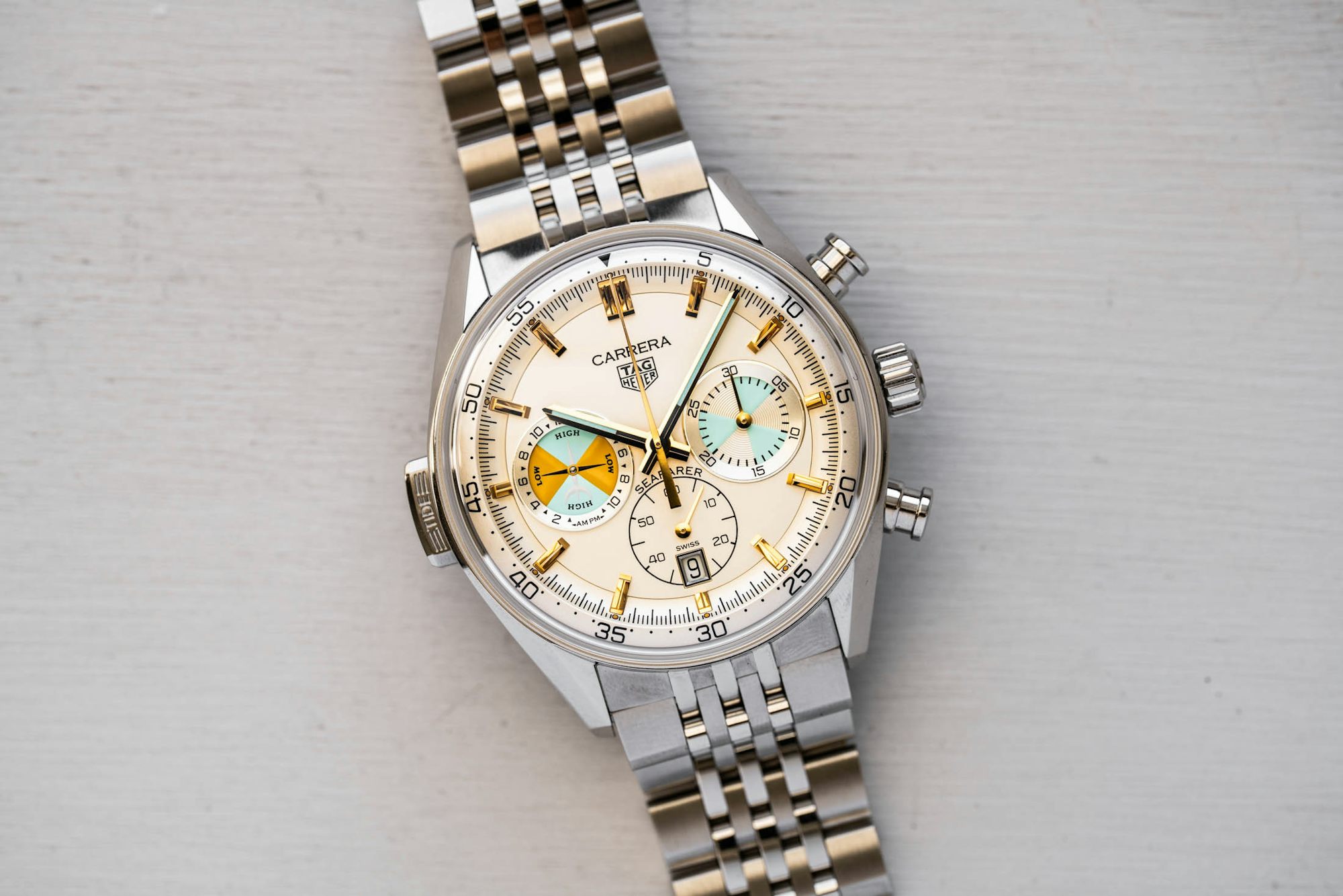 브랜드의 첫 번째 조수 지시기가 있는 시계에서 영감을 받은 색상이 현대 해양 시계의 첫 번째 비한정판 모델에 적용되었습니다. 이 시계는 브랜드의 전통을 이어가며, 바다와 관련된 기능성을 강조하고 있습니다. 조수 지시기는 해양 활동을 즐기는 이들에게 유용한 정보를 제공하며, 시계의 디자인은 이러한 기능성을 반영하고 있습니다. 브랜드는 이 모델을 통해 해양 탐험과 모험의 정신을 담아내고자 하였습니다.