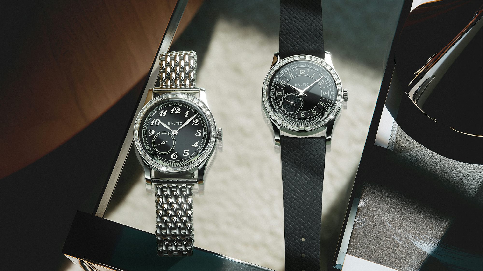 Baltic은 MR(마이크로 로터) 모델의 마지막 두 가지 버전을 발표하며 화려한 작별 인사를 전하고 있다. 이 모델은 실험실에서 재배된 모이사나이트를 특징으로 하며, 다이아몬드와 유사하지만 더 무지개 같은 효과로 빛나는 것이 특징이다. 스테인리스 스틸 케이스는 30m의 방수 기능을 제공하며, 내부에는 Hangzhou CAL5000a 마이크로 로터 무브먼트가 장착되어 있다. 이 무브먼트는 4Hz로 작동하며 42시간의 파워 리저브를 자랑한다. 7시 방향의 서브 시계는 무브먼트의 디자인 덕분에 가능하다. 또한, 디스플레이 케이스백을 통해 볼 수 있는 미적 요소는 블랙 코팅과 골드 톤 로터, 기타 골드 톤 악센트가 포함되어 있어 이전 모델들과 차별화된다.