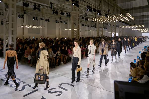 이탈리아 밀라노에서 디자이너 마리아 그라치아 치우리가 수요일에 펜디로 돌아왔다. 그녀는 레이스처럼 제작된 모피와 가죽을 특징으로 하는 감각적이고 섬세한 컬렉션을 선보였다. 디올과 발렌티노에서의 경험이 있는 숙련된 디자이너인 치우리는 로마 하우스에서의 데뷔 35년 만에 펜디로 돌아왔다. 이번 데뷔 남녀 공용 가을/겨울 컬렉션은 재구성된 검정, 흰색, 녹색 모피를 선보였다. 흐르는 드레스와 레이스가 특징인 이 컬렉션에서 치우리는 '욕망으로의 회귀'를 주장했다. 한 스칼렛 드레스는 1월 말에 세상을 떠난 발렌티노에 대한 경의로 여겨졌다. 디자이너는 성명에서 '신체가 점점 무시되는 시대'를 위해 이 컬렉션을 준비했다고 설명했다. 펜디 자매들에게 돌아온 것에 대해 치우리는 '그들이 나에게 준 것을 돌려주기 위해 여기 있다'고 보그와의 인터뷰에서 말했다. 여성들이 목걸이처럼 착용한 셔츠 칼라와 남성을 위한 대형 모피를 통해 치우리는 '여성복과 남성복의 구분을 넘어가고자 했다'고 밝혔다. 그녀는 젊은 아티스트 SAGG 나폴리와 협력하여 'Rooted but not stuck'와 'Loyal but not obedient'이라는 슬로건이 적힌 티셔츠와 축구 스카프를 제작했다. 배우 모니카 벨루치와 주드 로가 참석한 가운데, 펜디 본사 앞에서는 한국 보이밴드 스트레이 키즈의 방찬을 응원하는 수백 명의 젊은 팬들이 열광적으로 환호했다. 그들과 함께 약 10명의 반모피 활동가들이 밀라노 패션 위크에서 모피 금지를 촉구하며 시위를 벌였다.