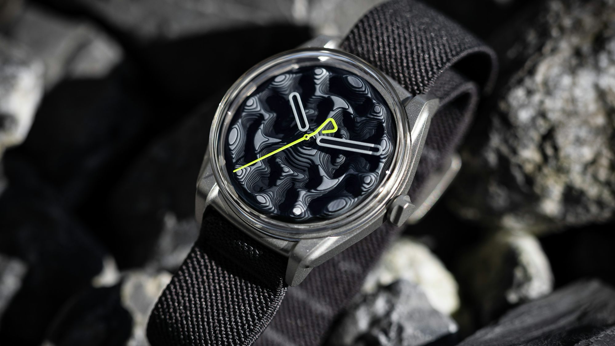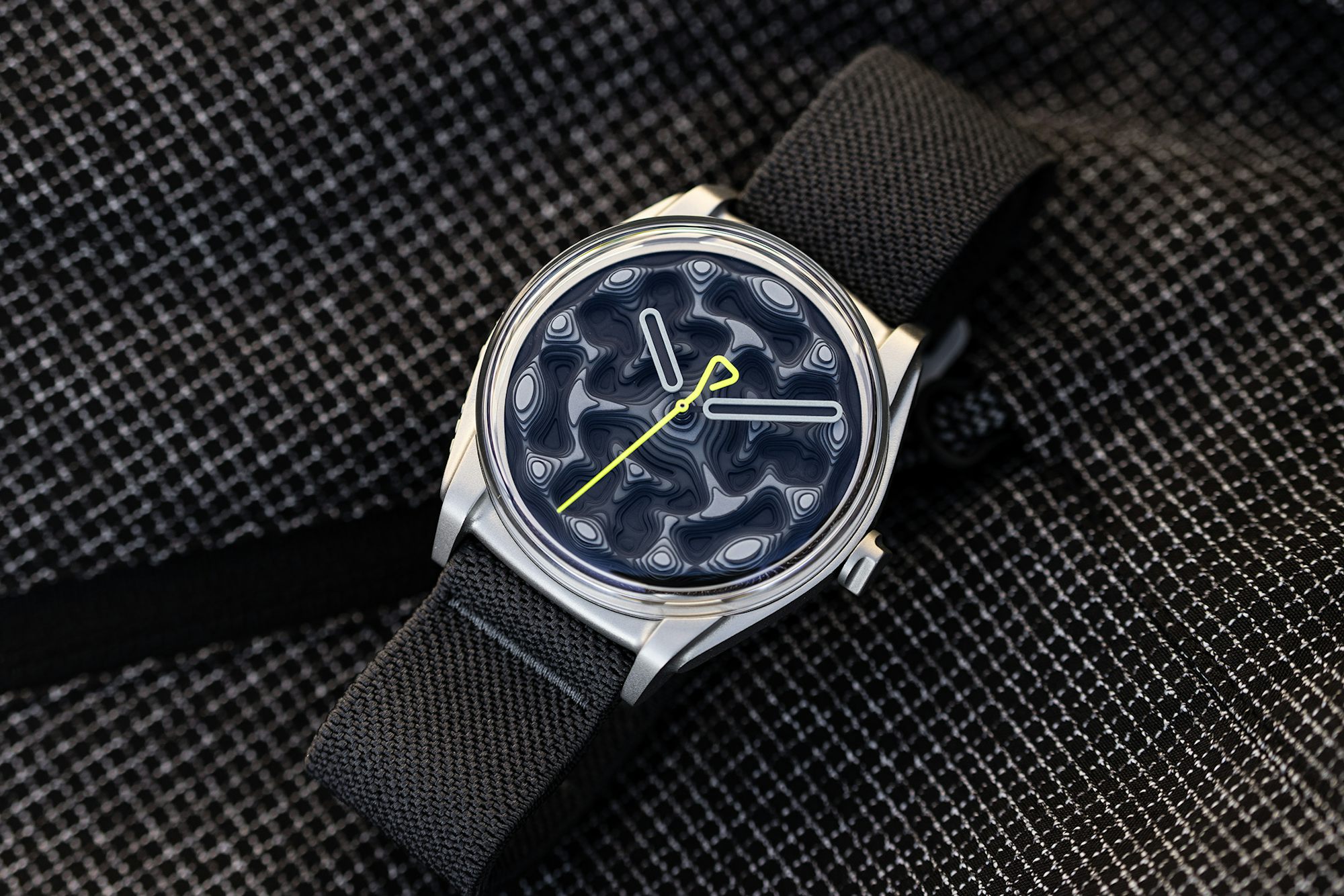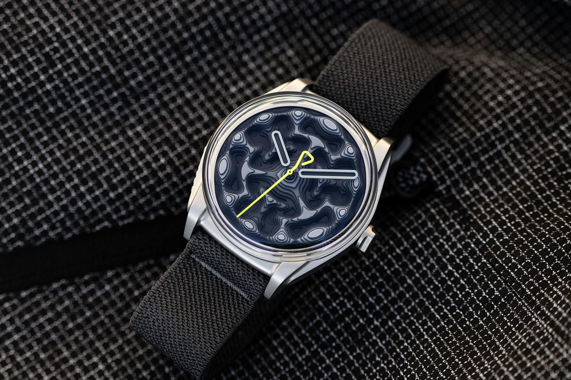 이 시계의 직경은 39.5mm이며, 두께는 사파이어 크리스탈 없이 5.9mm, 사파이어 크리스탈 포함 시 12.4mm이다. 케이스는 다이캐스트 모노블록 스틸로 제작되었고, 다이얼 색상은 그라디언트 그레이에서 블랙으로 변한다. 시계의 수명은 5 ATM(50미터) 방수 기능을 갖추고 있으며, 스트랩은 다이캐스트 스틸로 된 '후크' 버클이 있는 안트라사이트 엘라스틱 텍스타일 단일 조각 스트랩이다.