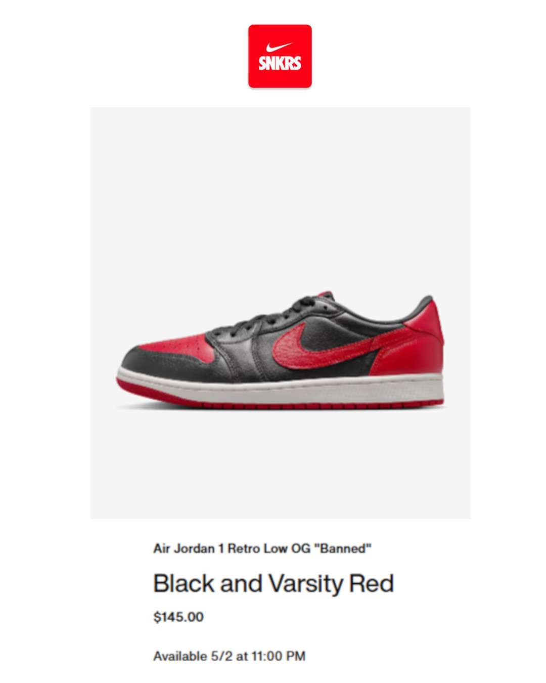 NIKE AIR JORDAN 1 LOW OG 'Banned' 출시 예정